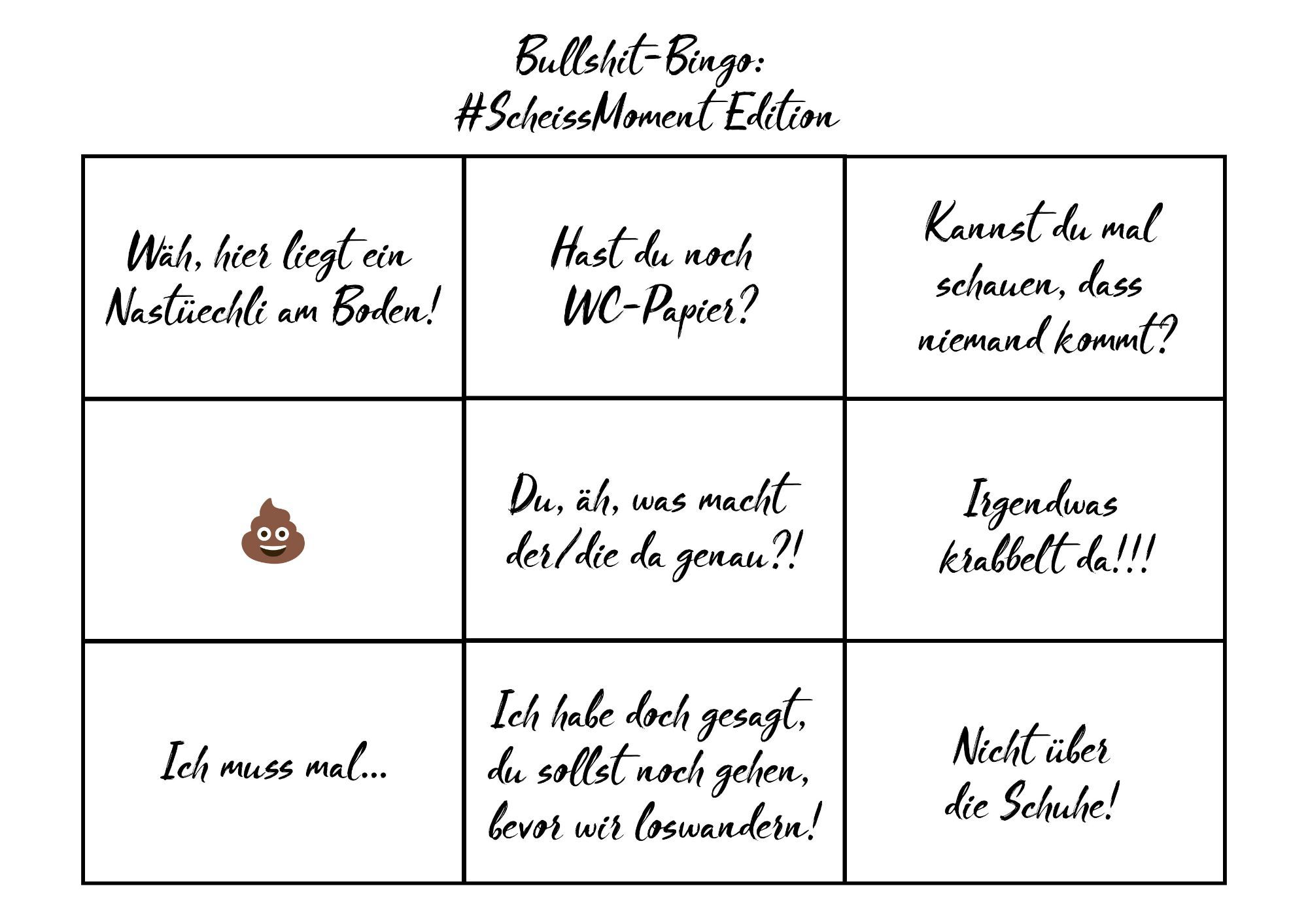 a «Bullshit Bingo: edizione #MomentoDiM» e inviaci all’indirizzo mail info@schweizer-wanderwege.ch la